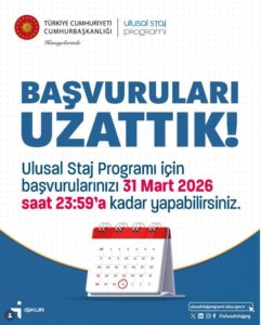 ⏳Ulusal Staj Programı için başvuru süresi 31 Mart 2026 saat 23:59’a kadar uzatıldı.